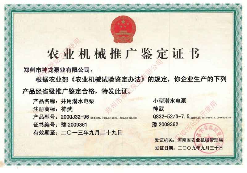 农业机械推广鉴定证书